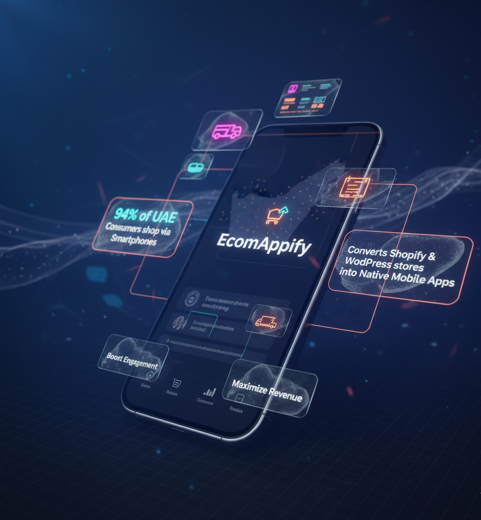In a market where 94% of UAE consumers shop via smartphones, having a mobile app isn't just an advantage—it's essential. EcomAppify specializes in converting Shopify and WordPress stores into fully customized native mobile applications that drive engagement, boost conversions, and maximize revenue.